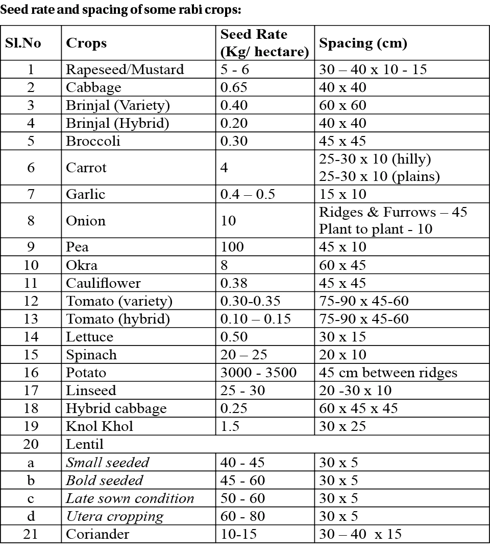 1. Crop variety: There are diverse types of variety of crops namely local variety, improved variety and hybrid varieties and each one requires different rate of seeds. Hybrid varieties require lesser amount of seed rate in comparison to local and improved varieties.