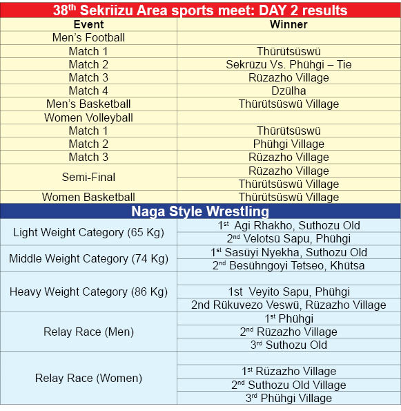 Sports 9th February 2021 Phek, Feb 9 (MExN): The 38th meet of Sekriizu Area Sports Association (SASA) entered the second day at Sekriizu HQ under Phek district, on February 9.