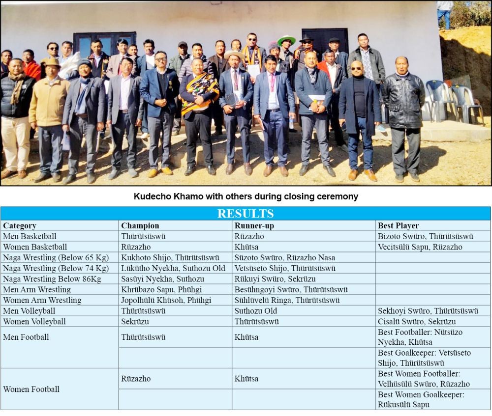 Nine Teams, which included; Dzülha, Thürütsüswu, Khütsa, Phühgi, Rüzazho, New Rüzazho, Suthozu Old, Suthozu New and Sekrüzu Town took part in the meet.