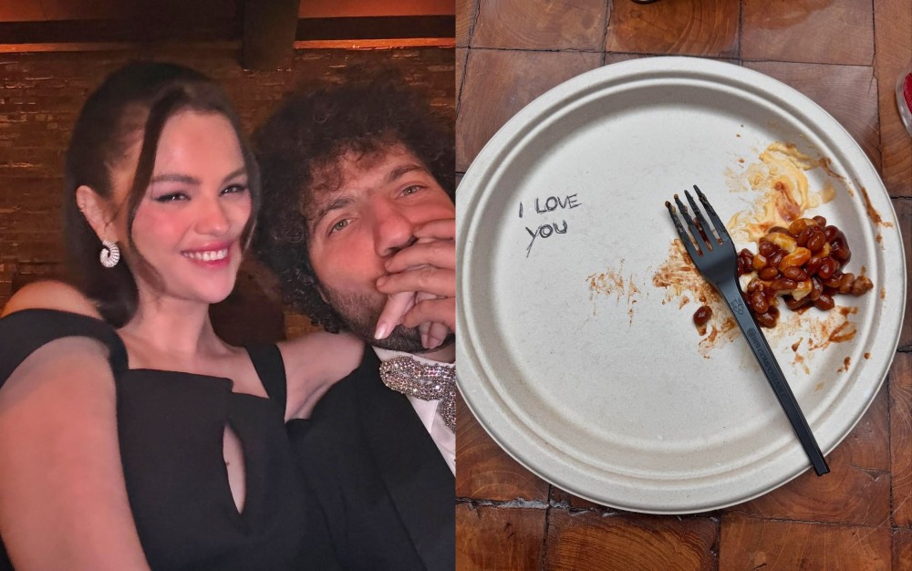 Selena Gomez kicked off her slideshow with a shot of a paper plate with beans on which someone scratched "I love you" in ink, reports ‘People’ magazine.