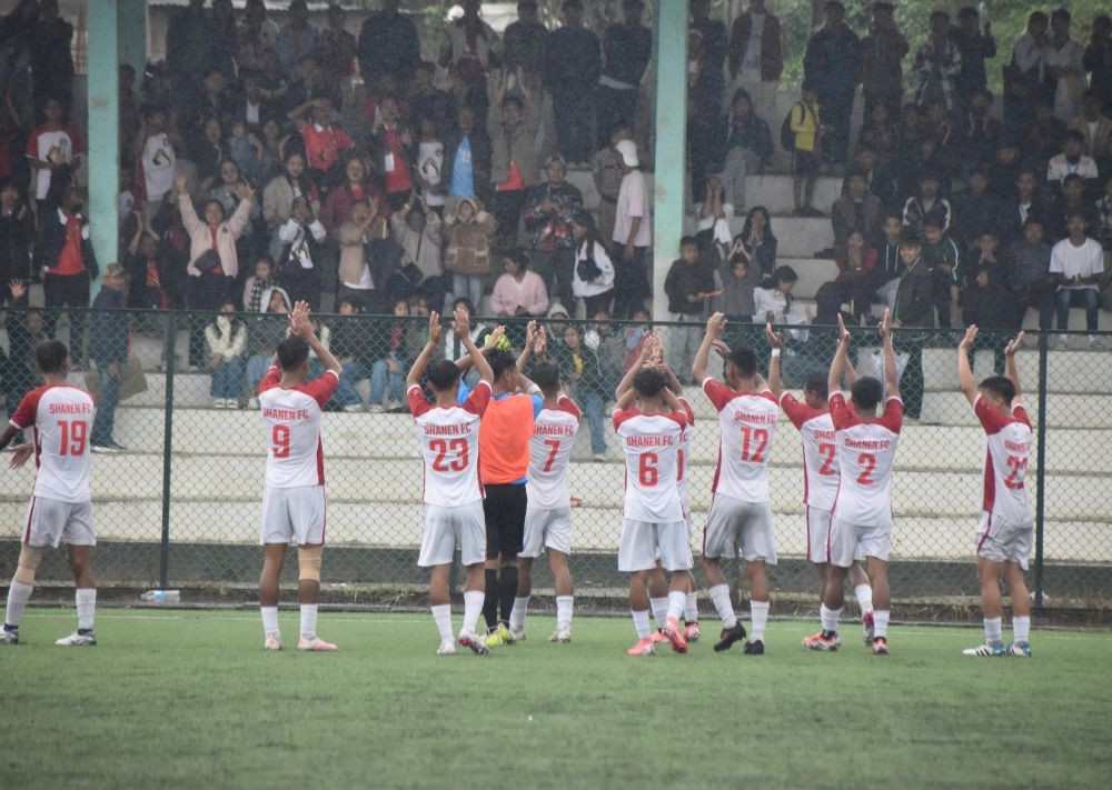 Shanen FC players thanking their fans for supporting them after their win against Auyang FC 3-1 on Wednesday at the 33rd Loyem Memorial Trophy in Tuensang Town (Photo Courtesy: Shanen FC)