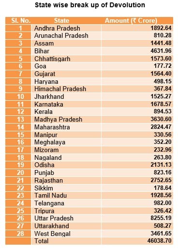 “Finance Ministry has issued sanction orders for Rs 46,038.70 cr today for the May instalment of Devolution of States’ Share in Central Taxes & Duties,” the Ministry stated in a tweet.