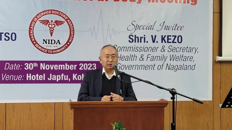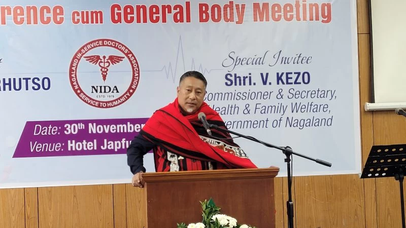 Commissioner & Secretary for Health & Family Welfare V Kezo addressing the Nagaland In-Service Doctors’ Association annual conference cum general body meeting at Hotel Japfü on November 30.