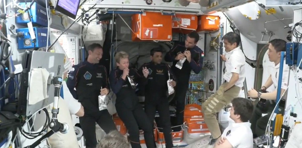 The AX-4 crew were welcomed onboard the orbital post by seven Expedition 73 crew members, namely, Anne McClain, Nichole Ayers, Kirill Peskov, Jonny Kim, Sergey Ryzhikov, Alexey Zubritsky, and Takuya Onishi.