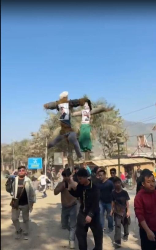 According to a police official in Imphal, protesters, mostly youths, torched heaps of discarded materials and burnt tyres while raising slogans against Deputy Chief Minister Nemcha Kipgen, a BJP MLA belonging to the Kuki-Zo community.