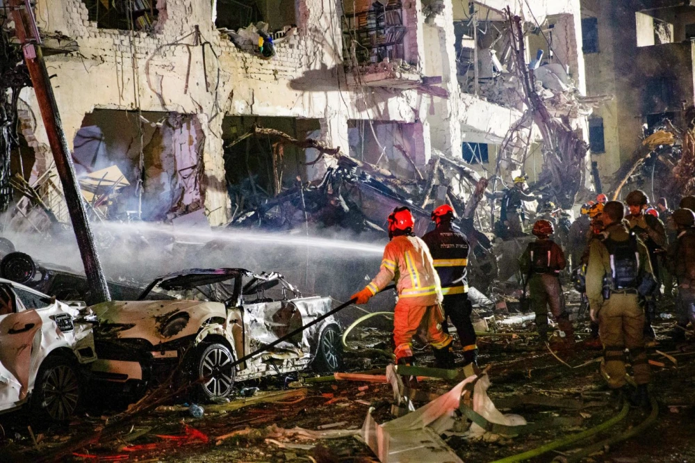 Tel Aviv: Members of the Israeli security and rescue forces work at the scene where a ballistic missile fired from Iran hit and caused damage in Tel Aviv, Israel, early on March 1, 2026.The United States and Israel on Saturday launched "major combat operations" against Iran, claiming that the country's Supreme Leader Ayatollah Ali Khamenei had been killed. Iran retaliated with a series of counterattacks against Israel and U.S. targets across the region. Late Saturday, at least 20 people were injured in Tel Aviv during Iran's latest round of strikes on Israel, Israel's national emergency service MDA reported. MDA said that a 40-year-old man is in a serious condition with a shrapnel wound. (Xinhua via IANS)