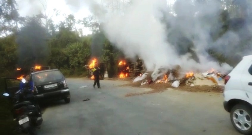 The burning of the trucks happened two days after Mizoram Rajya Sabha MP K. Vanlalvena raised the plight of Mizoram and Tripura areca nut growers in the Parliament.