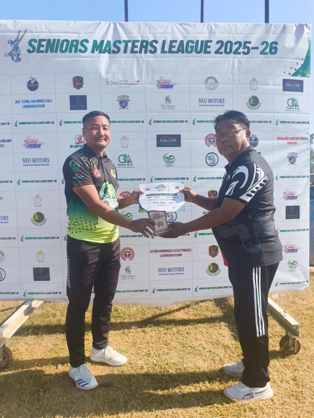 Uddin was adjudged Man of the Match for his innings. In the match played on December 14, Chumou Veterans won the toss and opted to bat, posting 113/4 in 20 overs. Nsamyibe and Lhoupe Koza were the key contributors for Chumou Veterans. Esa Warriors responded by reaching 117/1 in 15.3 overs. Wati Imsong top-scored with 58 off 45 balls, while Raza Barua added 34 off 41 balls, ensuring a comfortable chase.