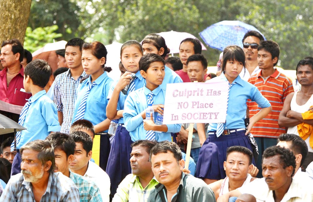 Ardent appeal for denying bail and awarding the “severest punishment” (amounting to no less than capital punishment) to the accused Thomas W. Humtsoe echoed in the rally today as each leader representing the many organisations were given the platform to speak. The accused had taken not three but five innocent lives, said one of the speakers. The two women, who were murdered that day, were said to be expectant mothers.
