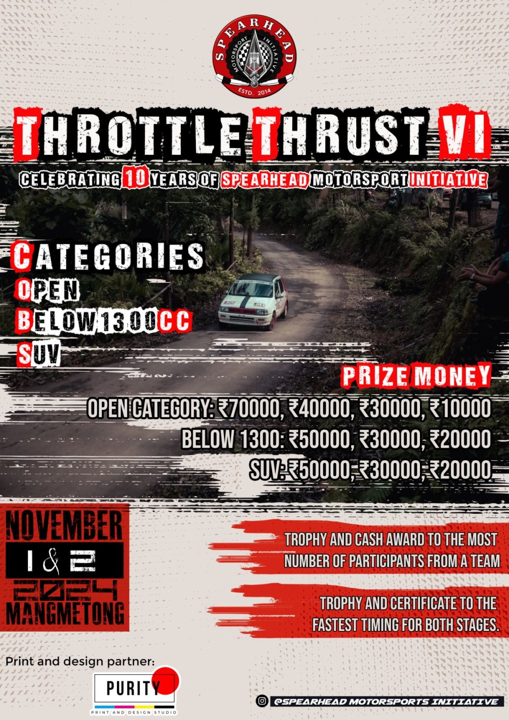 Spearhead Motorsport Initiative has announced that the sixth edition of their much-anticipated racing event, Throttle Thrust VI, will be held at Mangmetong village, Mokokchung. The event will take place on 1 & 2 November and the event will showcase exhilarating races across three competitive categories: Open, below 1300, and SUV.