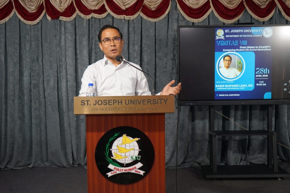 Chümoukedima, April 28 (MExN): The Department of Political Science, St Joseph University (SJU) organised Veritas Lecture VIII on April 28 under the theme “From Slates to ChatGPT: Comparing Student Life Across Generations.”