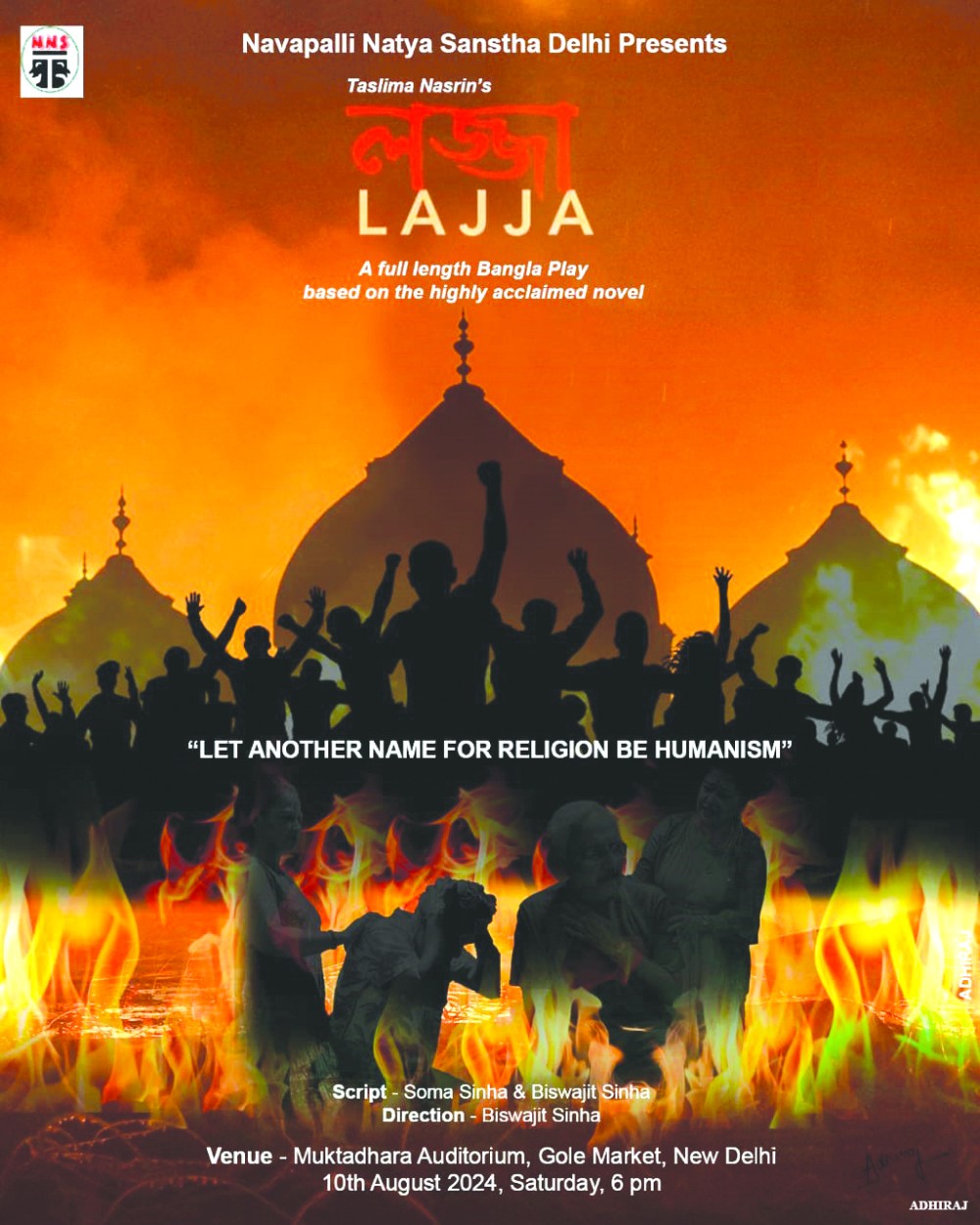 New Delhi, August 1 (MExN): Navapally Natya Sanstha based in Delhi has announced their upcoming stage adaptation of the book ‘Lajja’ written by Bangladeshi writer, physician, feminist, secular humanist, and activist Taslima Nasrin. The Bengali drama stage production is scheduled at the Muktadhara Auditorium, near Gole Market, New Delhi on August 10.