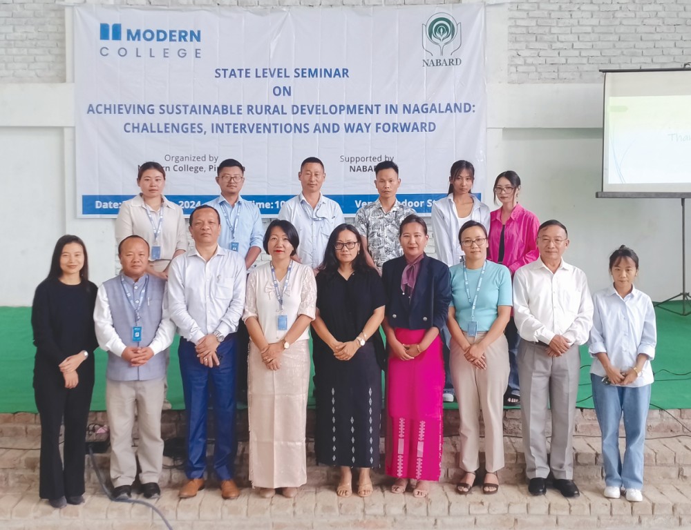 Kohima, August 3 (MExN): A one-day state level seminar on “Achieving Sustainable Rural Development in Nagaland: Challenges, Interventions and Way Forward” was conducted today by Modern College, Piphema with the support of NABARD (National Bank for Agriculture and Rural Development) at the College Indoor Stadium.