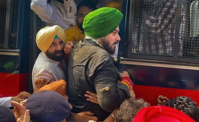 CHANDIGARH, OCTOBER 4 (IANS): Back in public glare after a long hiatus, Punjab Congress chief Navjot Sidhu was detained along with party legislators on Monday after they held a protest outside the Punjab Govern