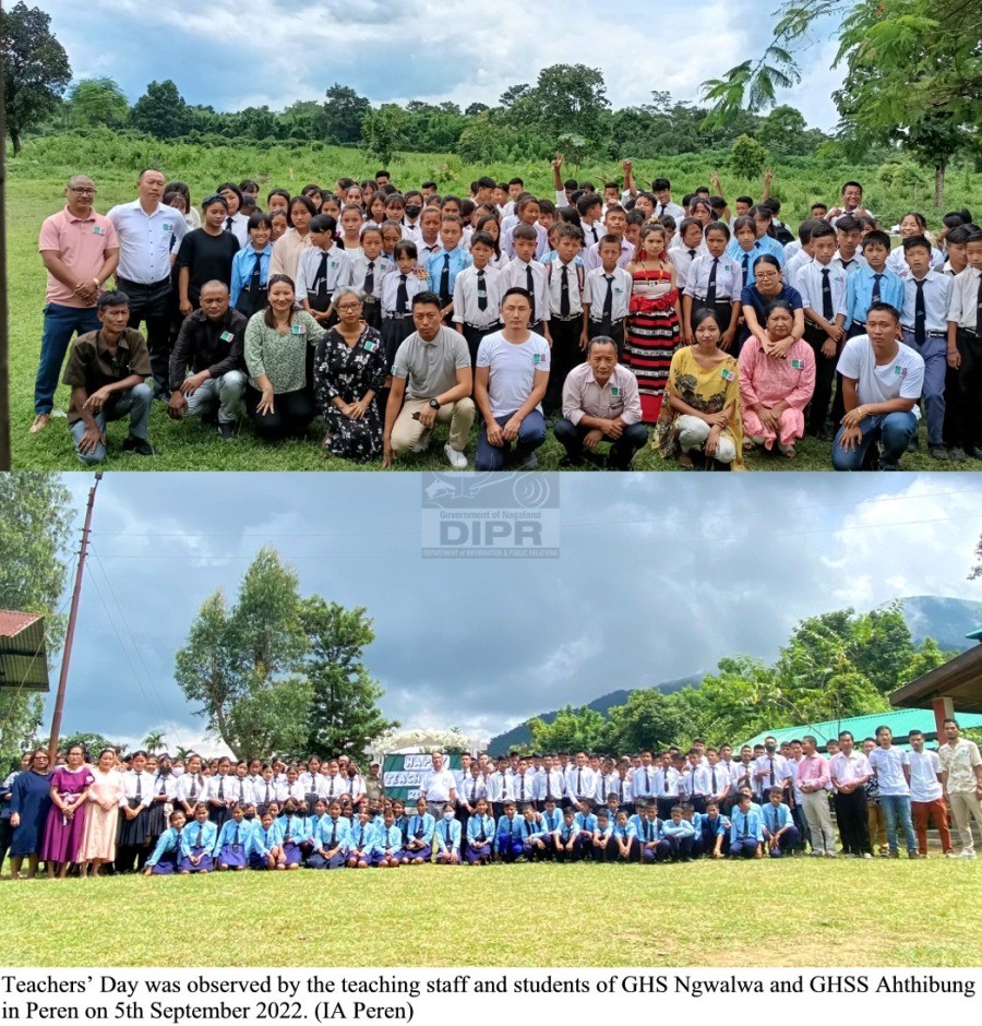 Peren: Teacher's Day 2022 was observed by the Teachers and Students of Government High School, Ngwalwa, Peren at the School Auditorium. A speech on significance of Teacher's Day was delivered by Lungciepeule of Class 10. On behalf of the teachers, Headmaster, Chusi Hieme conveyed words of gratitude to the students. A song presented by the students of Class 9 & 10. Teacher's Day was also celebrated at Govt HSS, Ahthibung. Various items such as special numbers, dances, fancy dress and other items were performed by the students to mark the celebration.