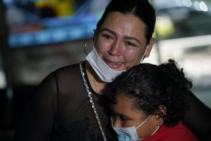 Emely, right, is reunited with her mother, Glenda Valdez at Austin-Bergstrom International Airport, Sunday, June 6, 2021, in Austin, Texas. (AP Photo/Eric Gay)