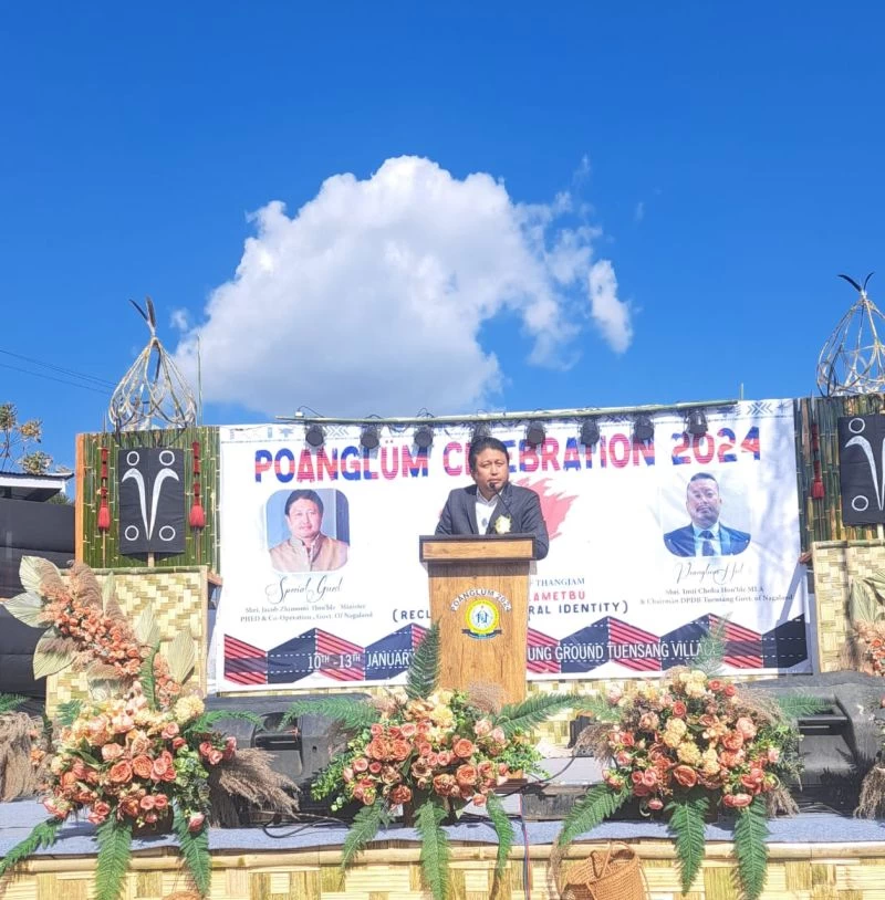 The Sejung Ground in Tuensang village came alive with the vibrant hues of culture as the Tuensang Sang Staff Thangjam organised Poanglum celebration from January 10 to 13. Under the theme “Shensi-Nge Lametbü” (Reclaiming Cultural Identity), the event welcomed Jacob Zhimomi, Minister of PHED & Cooperation, Government of Nagaland, as the special guest.