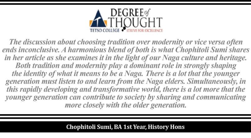 Degree of Thought is a weekly community column initiated by Tetso College in partnership with The Morung Express. Degree of Thought will delve into the social, cultural, political and educational issues around us. The views expressed here do not reflect the opinion of the institution. Tetso College is a NAAC Accredited UGC recognised Commerce and Arts College. The editors are Dr Hewasa Lorin, Dr Aniruddha Babar, Nisha Dahiya and Meren. For feedback or comments please email: dot@tetsocollege.org