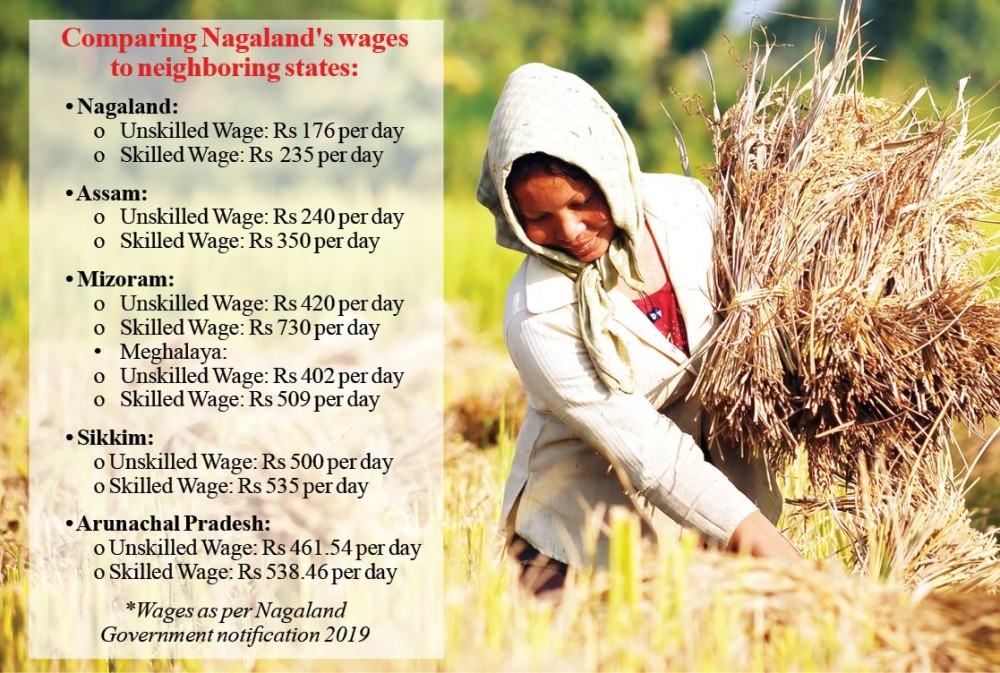 The Government of Nagaland last revised the wages in 2019, setting the daily wages for unskilled workers at Rs 176, semi-skilled workers at Rs 210, and skilled workers at Rs 235. Despite a significant rise in inflation over the past five years, these wages have not been reviewed or revised since 2019. The NSHRC expressed concerns about how workers could manage their basic needs under such stagnant wages, stating, "If a state government does not pay its employees/workers at least to meet their basic needs, it would amount to exploitation and denial of right to live with dignity."