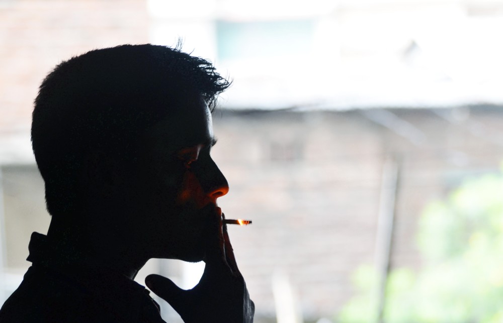 A man is silhouette as he smokes a cigarette on World No Tobacco Day in Dimapur, Nagaland on May 31. Photo by Caisii Mao