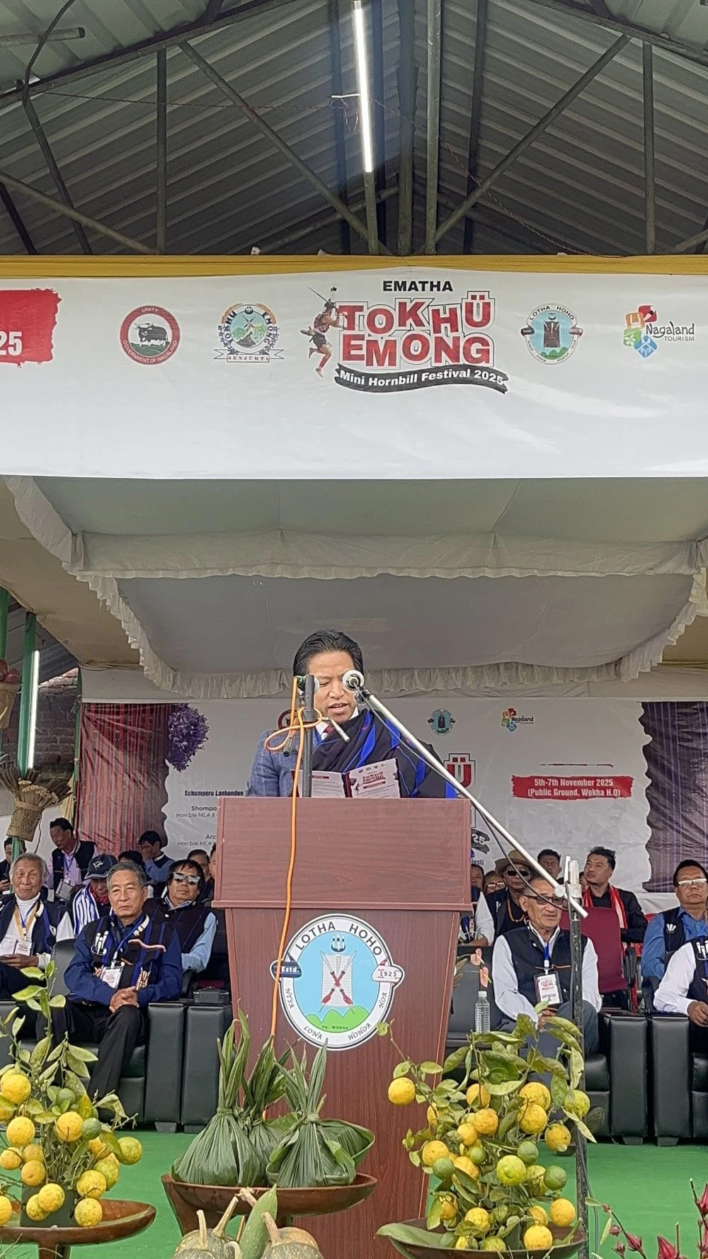 The opening programme of the Tokhü Emong Mini Hornbill Festival 2025 was held with MLA and Chairman of SDPDB Bhandari, Achumbemo Kikon, gracing the occasion as the special guest at the Public Ground, Wokha, on November 5.