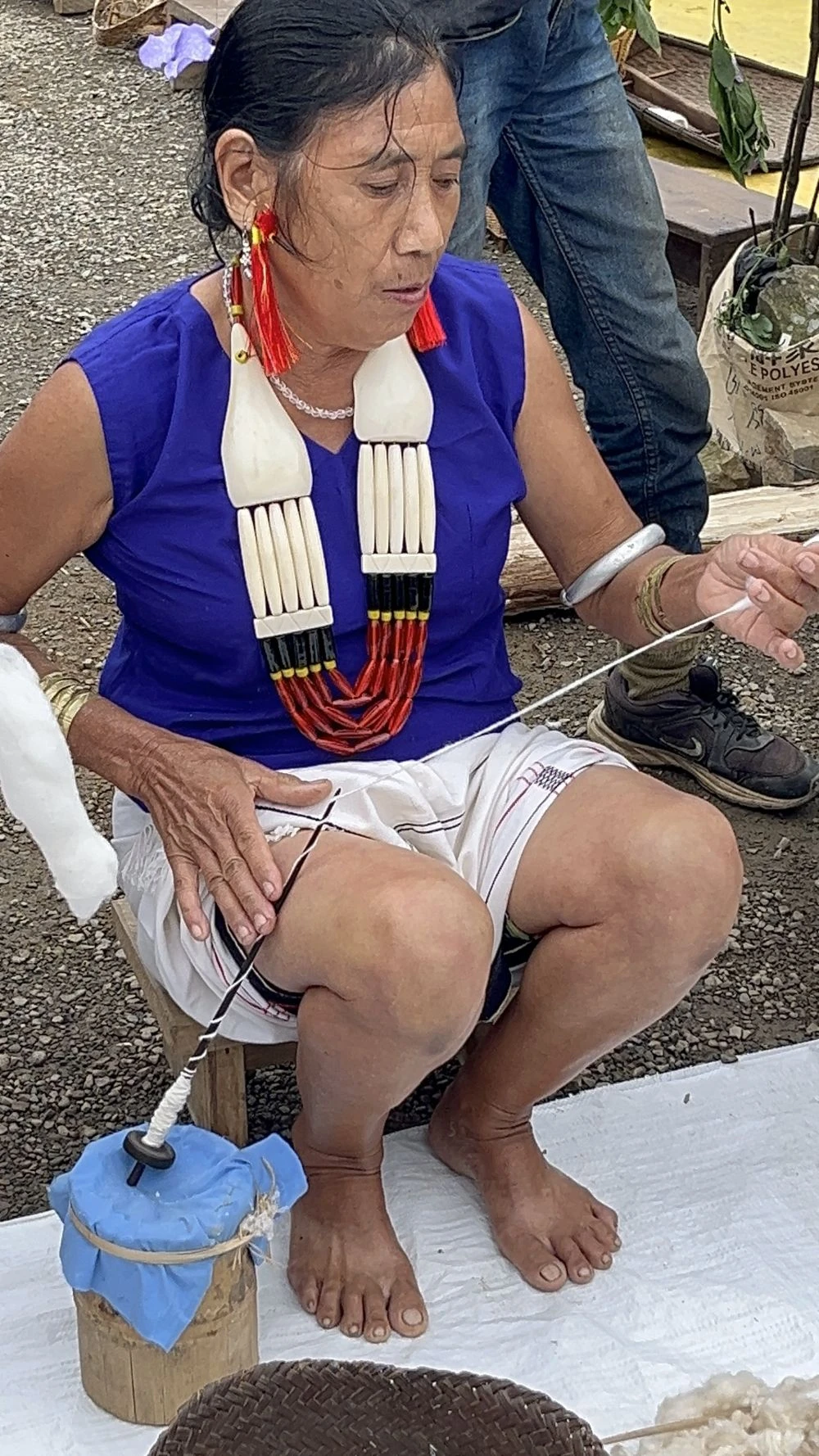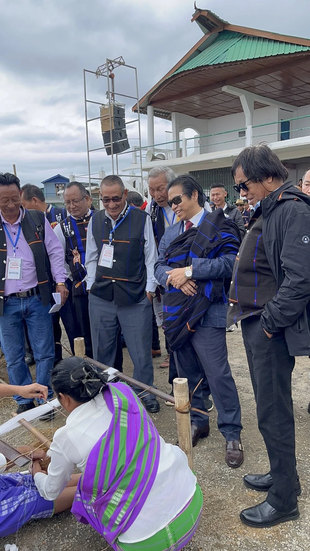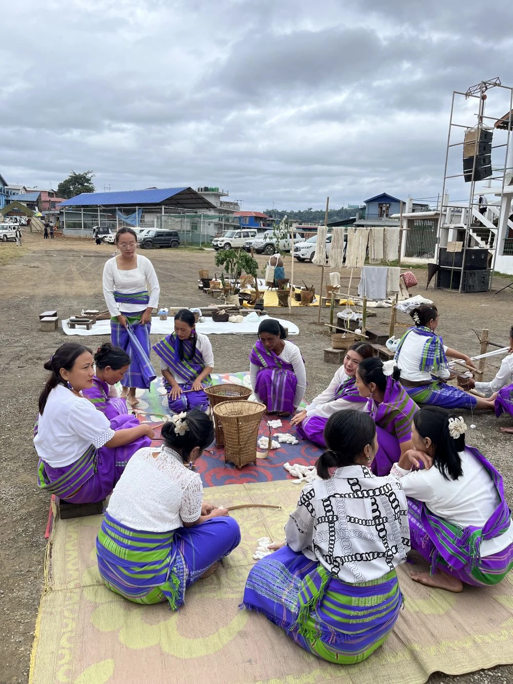 Live demonstration of traditional weaving from cotton processing to cloth making during the Tokhü Emong Mini Hornbill Festival 2025 at the Public Ground, Wokha, on November 5. (Morung Photo)