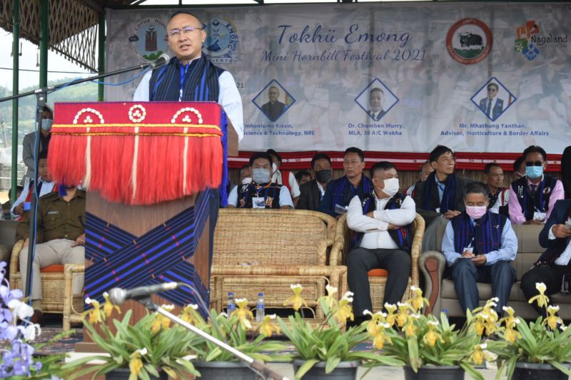 Mhonlumo Kikon, Advisor, IT, Science & Technology and NRE speaking during the Tokhü Emong cum mini Hornbill Festival 2021 in Wokha.