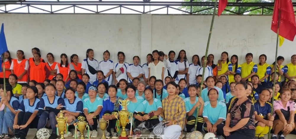 Tokhu Emong 2nd edition of women’s football and volleyball tournament organised by Eleo Hoho, Bhandari Town began at Public ground, Bhandari, Wokha on October 24. The program was graced by Achumlo Mozhui, Women Associate Pastor, Bhandari Town Baptist church and shared some motivational words to encourage the participants. She also emphasised the importance of discipline not only in the sports field but also in their everyday lives. A total of ten women football teams and volleyball teams will be participating in the tournament. (DIPR Photo)