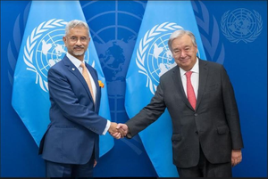 United Nations, September 27 (IANS) External Affairs Minister (EAM) S. Jaishankar on Thursday met with the top leaders of the world organisation, Secretary-General Antonio Guterres, and President of the General Assembly Philemon Yang, who expressed appreciation for India's global role.
