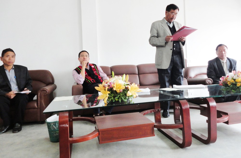 Minister E. E. Pangteang addresses the staff of Department of Tourism at the conference hall of the Department on April 1 in Kohima.