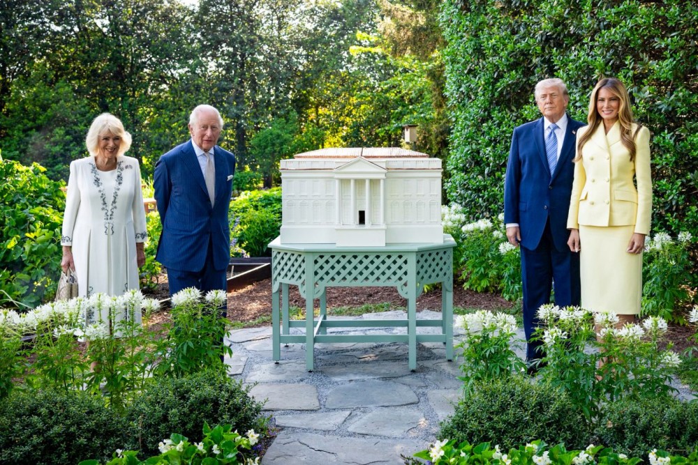 Washington, D.C.: U.S. President Donald Trump, First Lady Melania Trump, Britain’s King Charles III and Queen Camilla visit the White House beehives on the South Grounds in Washington, D.C., USA, on Monday, April 27, 2026. (Photo: IANS/X/@FirstLadyOffice)