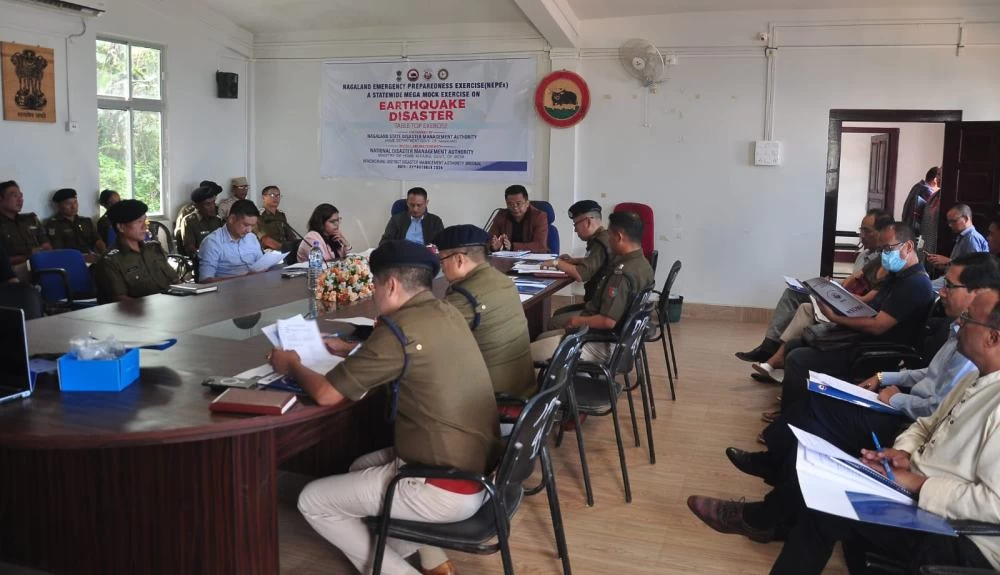 Kohima: A coordination meeting and district-level table top exercise was held on October 22 at the Deputy Commissioner's conference hall, Kohima, involving all line departments, NGOs, and stakeholders. The meeting, chaired by DC Kohima Kumar Ramnikant, IAS, highlighted the importance of effective communication, resource mobilization, and rehabilitation during the exercise. He emphasized the need for the drill to be as realistic as possible, though students and civilians will not be involved this time.