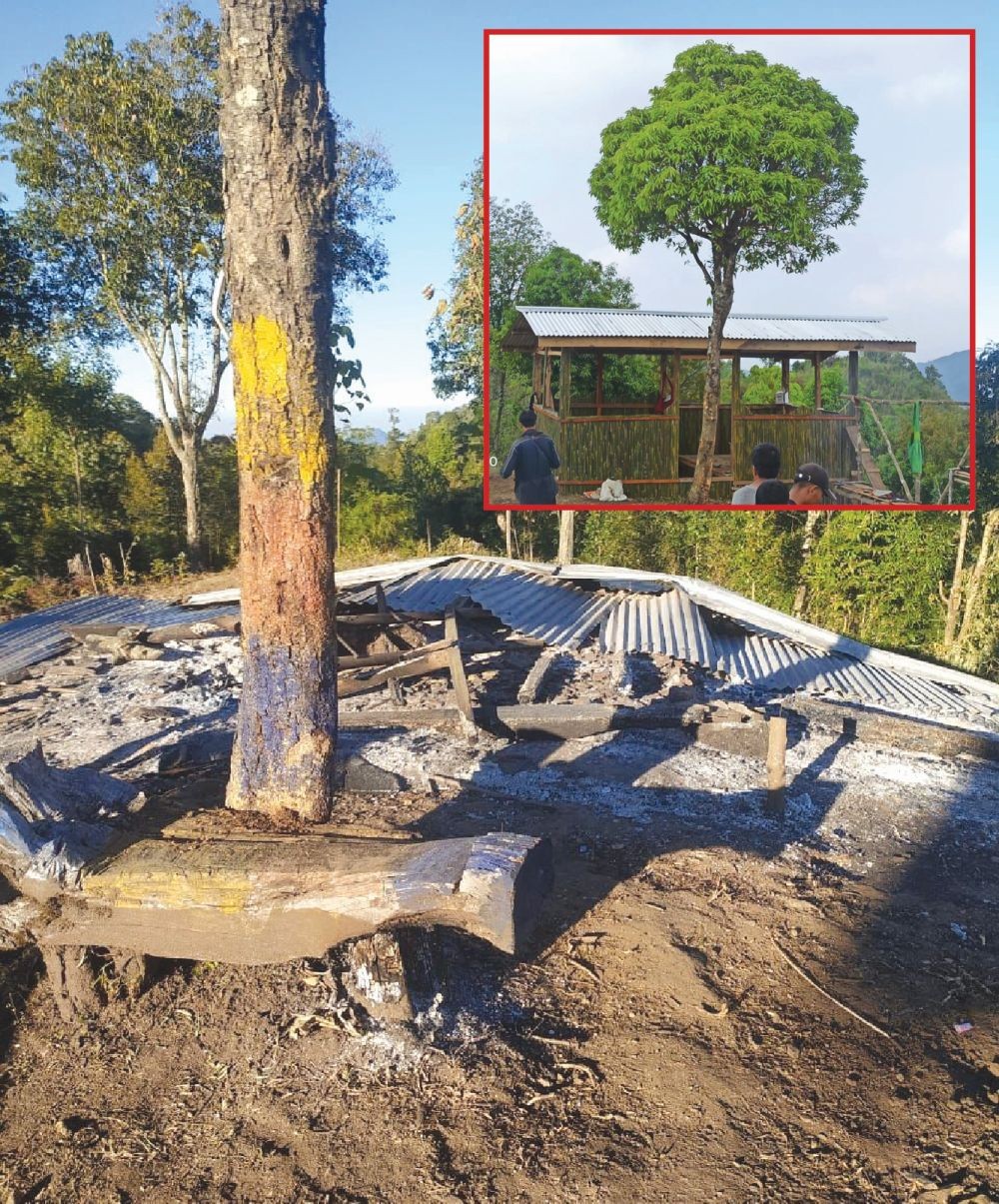 The recreational cabin of Sipongsang Baptist Church, in Tuensang district reportedly razed in a suspected arson on December 3. (Inset) The cabin before the fire. (Photo by Special Arrangement)