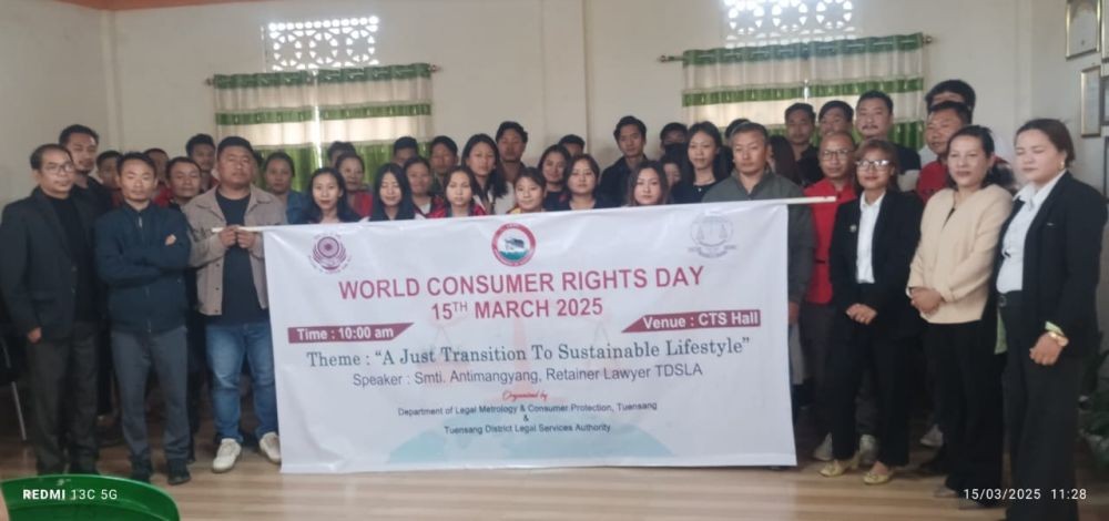 The Department of Legal Metrology & Consumer Protection (LMCP), in collaboration with the Tuensang District Legal Services Authority (TDLSA), observed World Consumer Rights Day at CTS Hall under the theme ‘a just transition to a sustainable lifestyle’ on March 15.