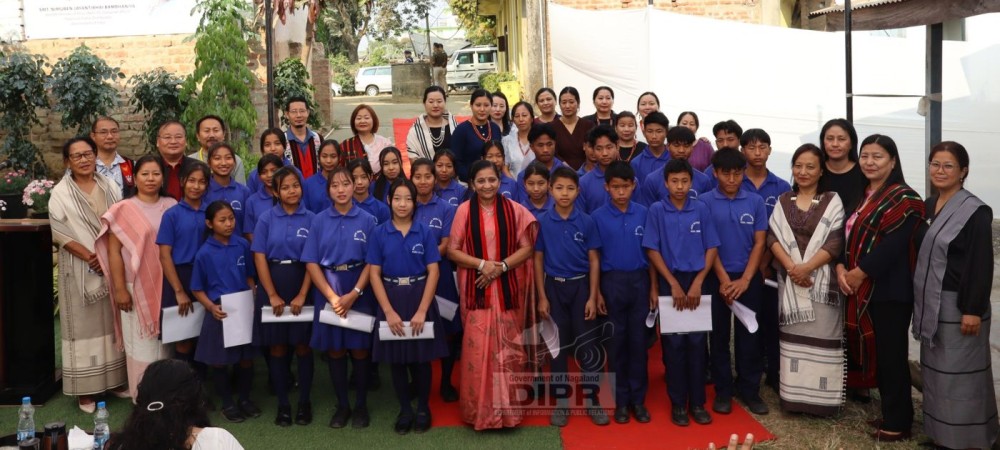 Dimapur, February 21 (MExN): Union Minister of State for Consumer Affairs, Food and Public Distribution, Nimuben Jayantibhai Bambhaniya, today visited Government Middle School in Kuda village, Dimapur, on the second day of her Nagaland tour.