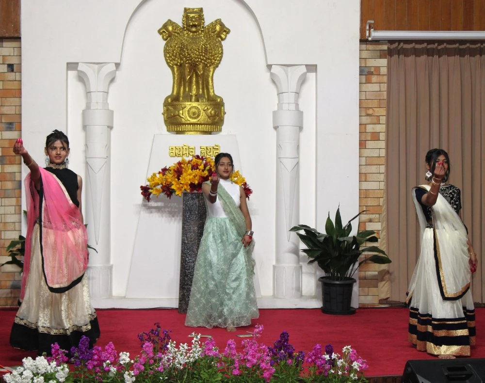 Performances included Bhakti Nritya by Annpurna Gupta, Prem Nritya by Riya Gupta, a group dance by Alisha and friends, a bhajan by K. P. Gupta, and a Kathak dance performance on the Mahabharata by Harshita Maddheshi.