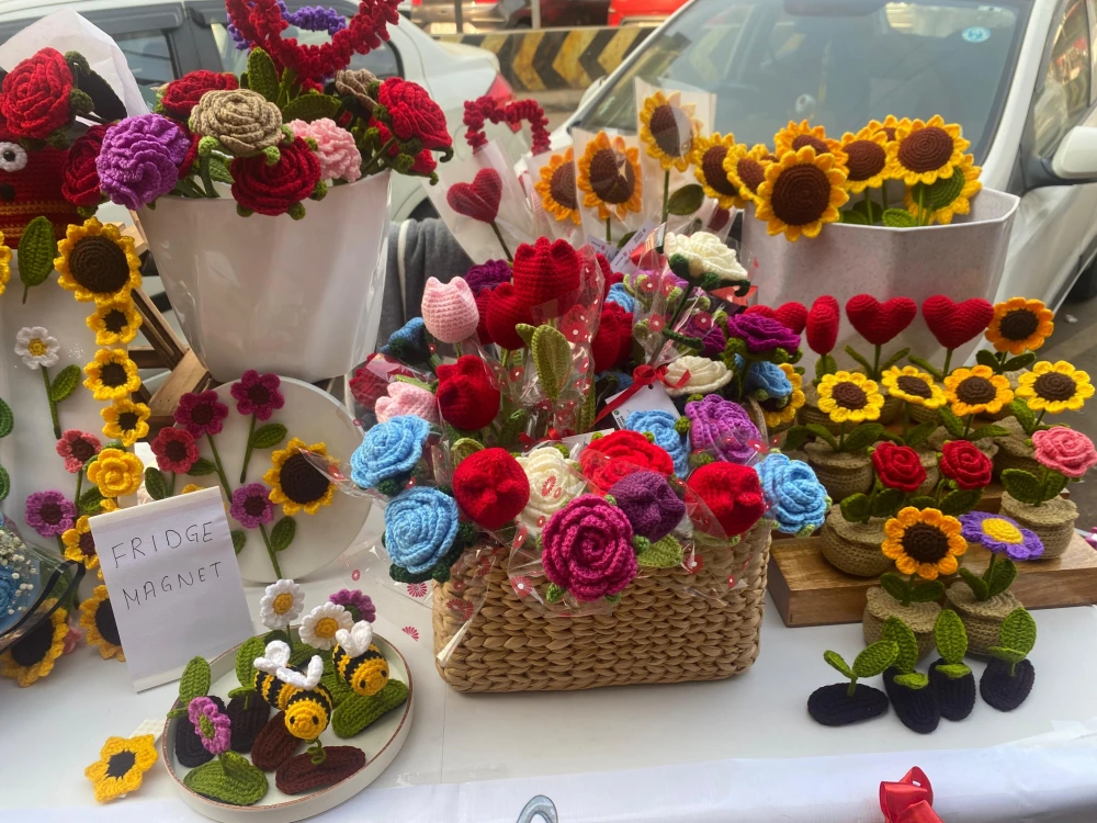 From intricately designed handicrafts to creatively wrapped floral bouquets, the pop-ups reflect the growing entrepreneurial spirit.