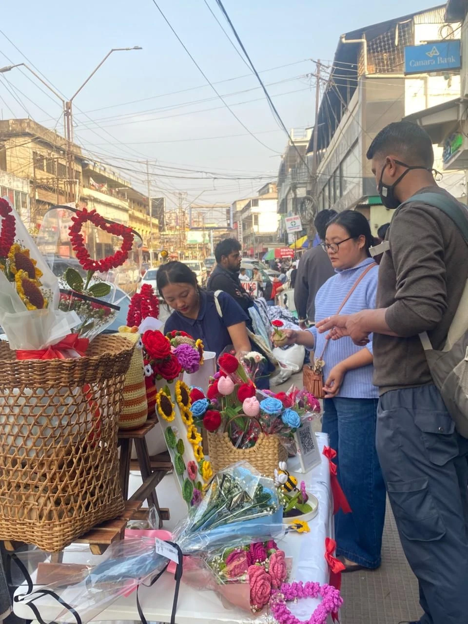 The streets of Dimapur have transformed into a vibrant marketplace on the eve of Valentine’s Day, with pop-up stalls offering everything from fresh flowers to handmade crafts and personalised gifts adding a festive charm to the city.