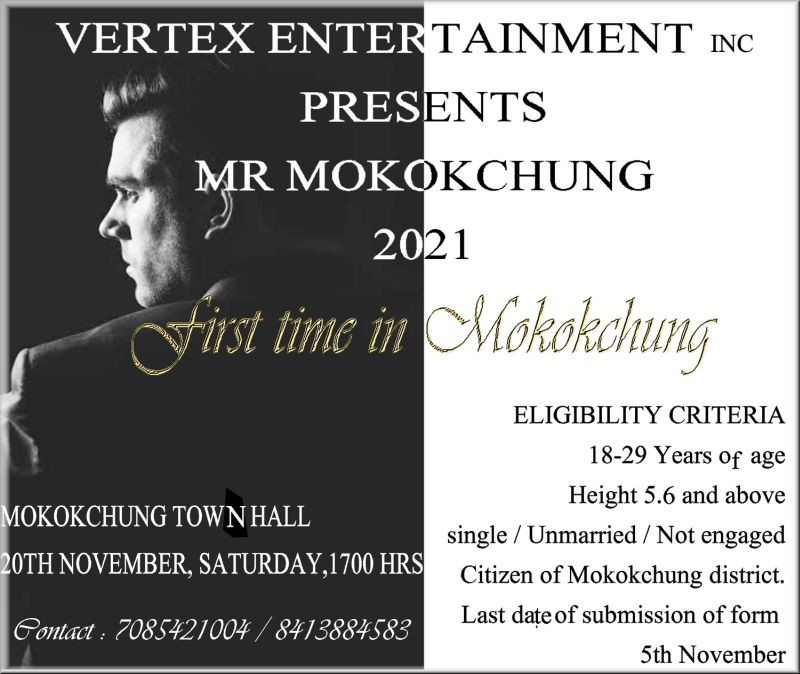 For further enquiries, the VEI has asked those vying to be the first Mr Mokokchung to contact the show manager, Arenla Pongen at 7085421004/ 8413884583.