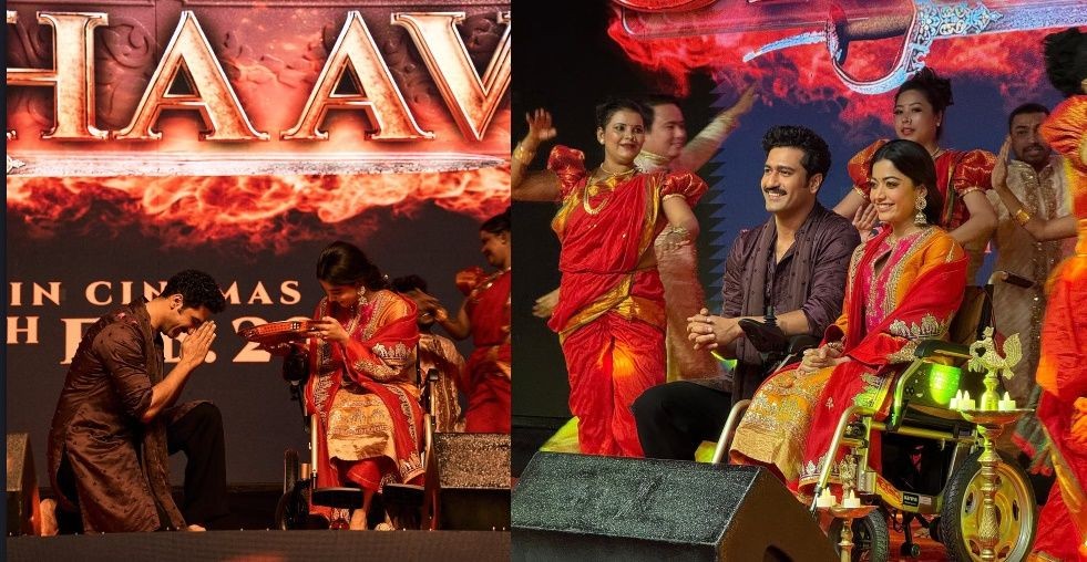 In the late hours of Friday, Rashmika took to Instagram, where she shared two photographs from the promotional event of their upcoming film “Chhaava”. The first picture, Vicky is seen bowing down with folded hands in front of the actress, who is sitting on a wheelchair due to a fractured leg.