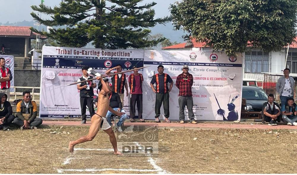 Tribal affairs Department organised a State Level spear throwing competition on the occasion of Janjatiya Gaurav Varsh celebration & IEC campaign during the Hornbill festival at NSF solidarity park, Kohima on December 7. Letuozo Patrick Kiewhuo Angami emerged as the winner while Merithung Lotha and Penhaulungzing Mbung Zeliang secured second and third positions respectively. Altogether 32 participants participated representing sixteen tribes and foreigners from Australia and Sri Lanka also participated in throwing the Naga spear.