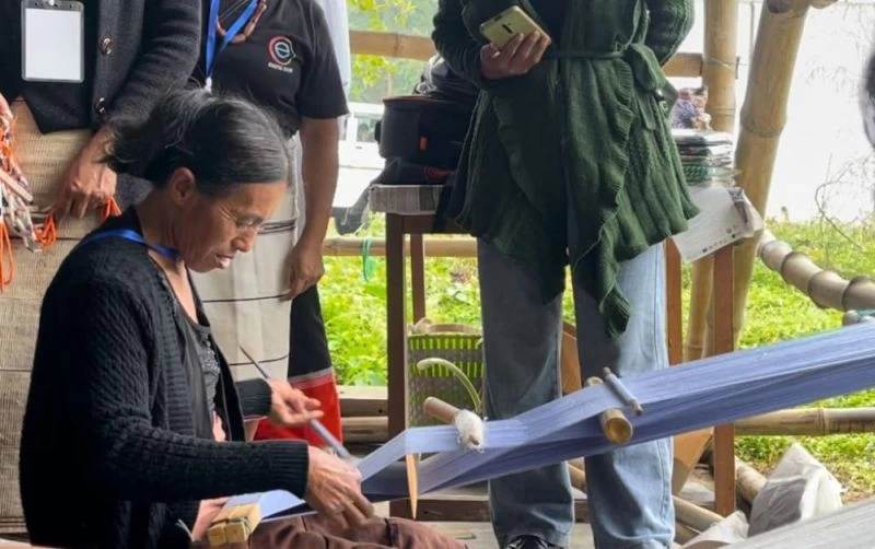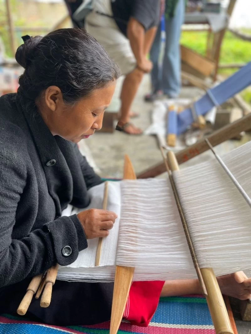 A participant from Noklak district showcases her talent during the competition. The participants were from different age group. Here, a participant, perhaps the oldest, is seen in the midst of the competition. (Morung Photo)Another supervisor of the competition meticulously counts the threads woven by the participants during the three-minute timeframe. The winners were adjudged based on the number of threads woven as well as the quality of the finished product. After two rounds of competition, Vekulü won the first prize by weaving 28 threads in three minutes. Mulutolü Lüpu and Vesevolü Chuzho respectively secured second and third position. (Morung Photos)