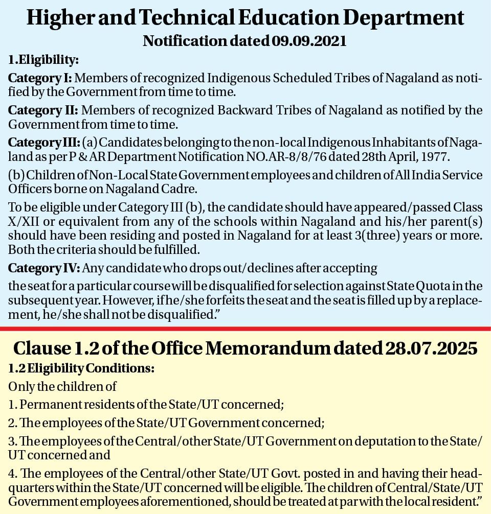 She challenged the State’s Notification dated September 9, 2021, issued by the Department of Higher and Technical Education, which laid down eligibility conditions for MBBS seats allotted to Nagaland from the Central Pool of 42 seats provided annually by the Central Government.
