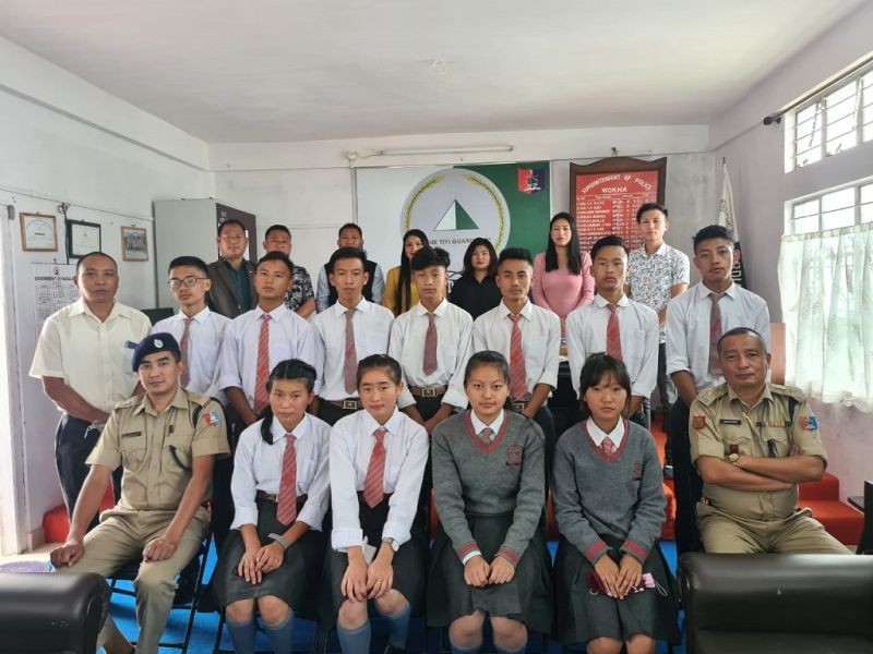 Wokha Police officers and Governing body of Regimental School (DEF Wokha) with the students during the felicitation programme for HSLC successful candidates at SP Office chamber on August 2. (DIPR Photo)