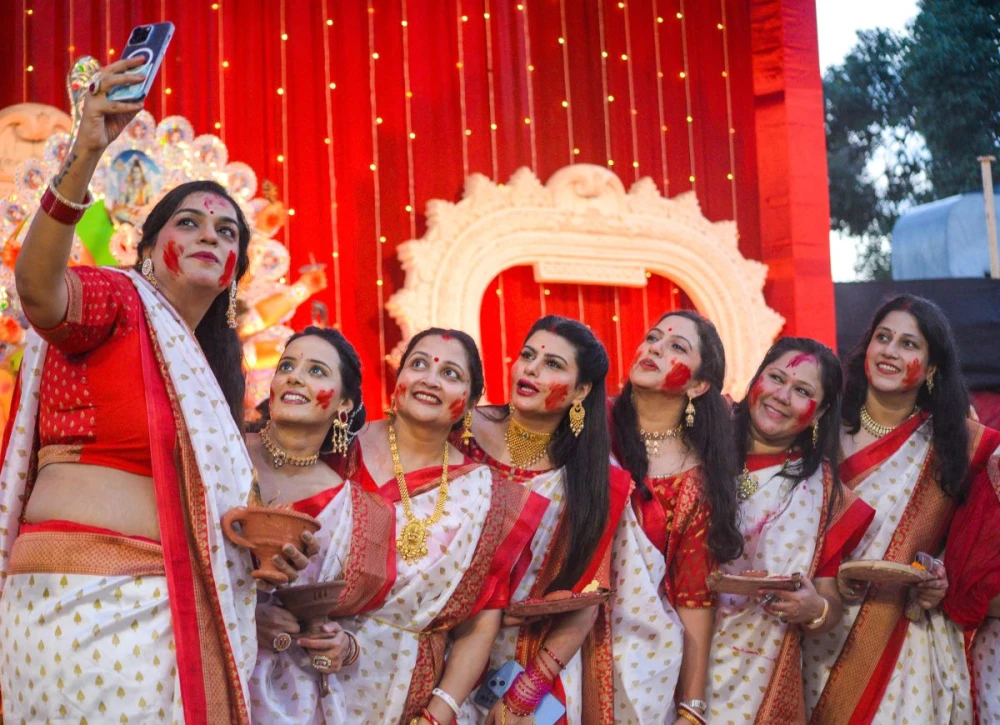 New Delhi, October 2 (IANS) Women across India enthusiastically celebrated the traditional ritual of ‘Sindoor Khela’ on Vijayadashami on Thursday, marking the conclusion of the nine-day Durga Puja festival.
