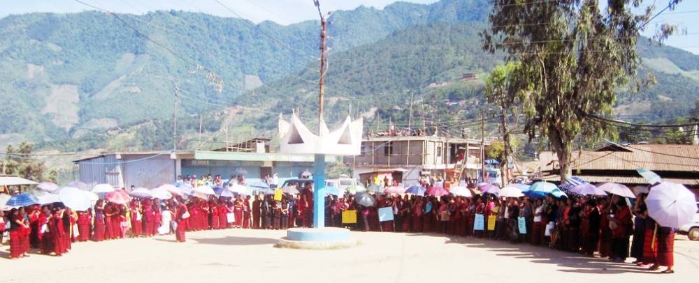 Hundreds of women from all sections of the society under the banner of Akedah Sangtam Laru Thsingmujang (AST) gathered today at the police point to protest and condemn the rape committed on the minor at Kiphire yesterday.