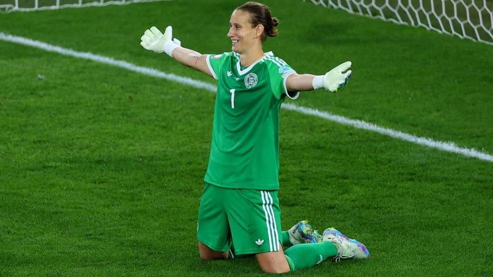 Sjoeke Nusken soon levelled with a header, but in the second half had her own spot-kick kept out by Pauline Peyraud-Magnin. Germany held out for penalties and Berger converted one and saved two to earn her team a record 11th Women's EURO semi-final – three years on from beating France at that stage, UEFA reports.