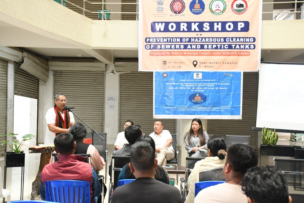 Kohima, October 18 (MExN): A workshop on the prevention of hazardous cleaning of sewers and septic tanks was organised by the Kohima Municipal Council (KMC) under the NAMASTE Scheme at the Super Market Complex, Kohima on October 18. A DIPR report stated that the event aimed to raise awareness about the dangers of manual scavenging and promote safer, mechanized alternatives.