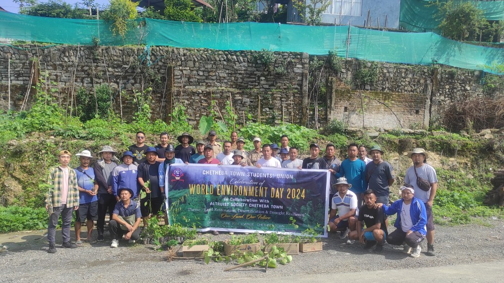 The Altruist Society Chetheba, in collaboration with the Chetheba Town Students Union, celebrated World Environment Day 2024 on June 5 in Chetheba Town, Phek district. Approximately 200 fruit saplings were planted along the National Highway-702A, from Government Polytechnic College to Khüsuntüka. The saplings were donated by Forest Range Officer Chozuba Kezhawetuo.