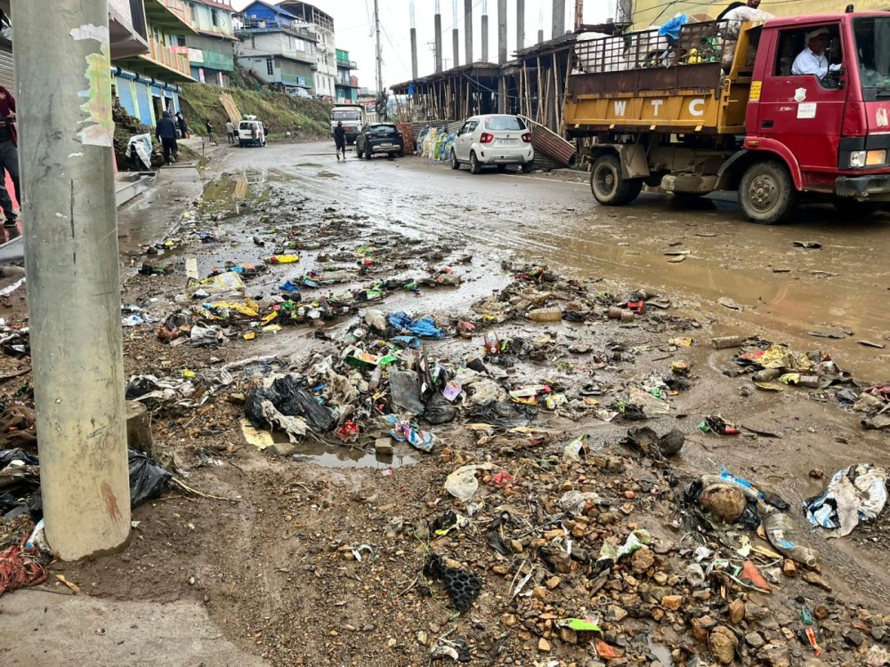 Dimapur, March 16 (MExN): The Wokha Town Council (WTC) cleared accumulated waste near the First Cry Shop along NH-2 in Wokha town following waterlogging caused by an overflowing drainage system.